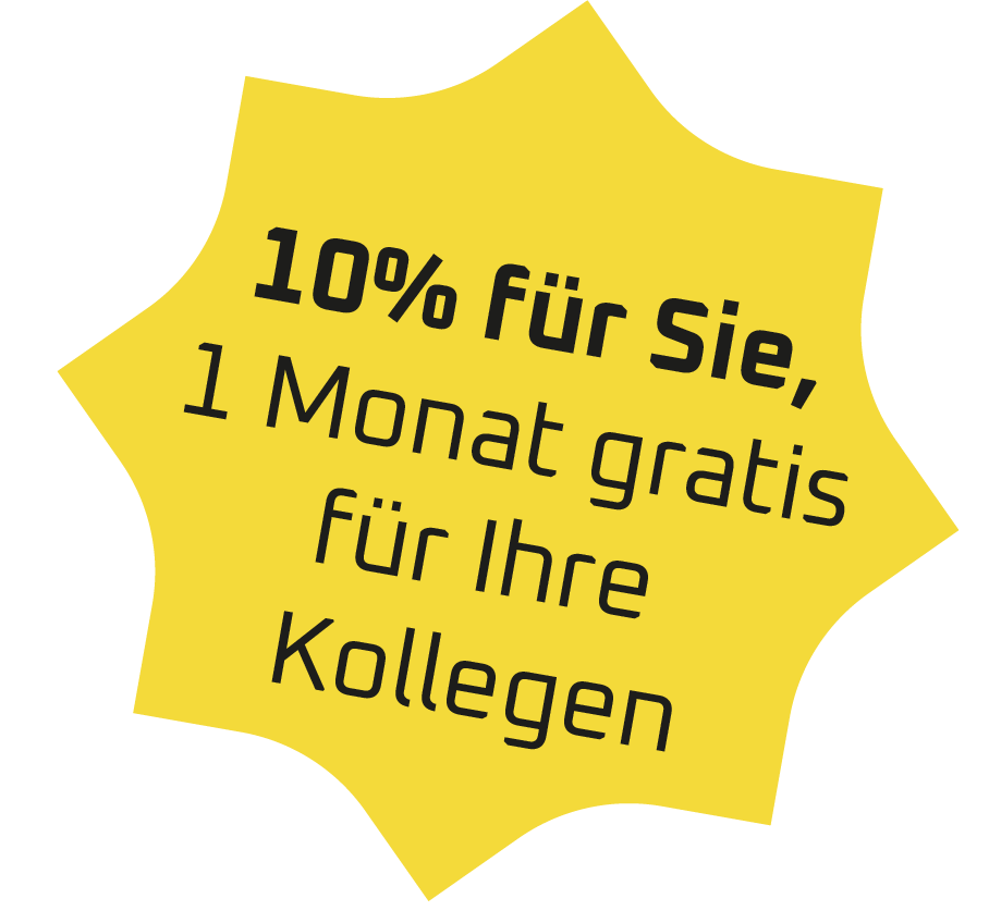 30 Tage lang. Dann gibt’s die Prämie, wenn Deine Kolleg:innen sich als kostenpflichtige Kunden registrieren.